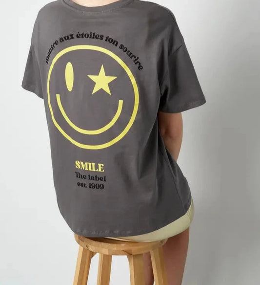T-SHIRT HAPPY LIFE SMILEY | GREY